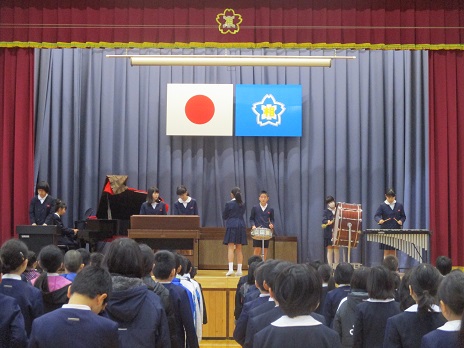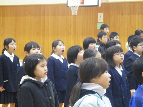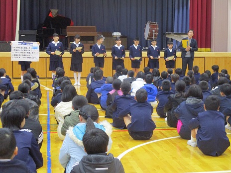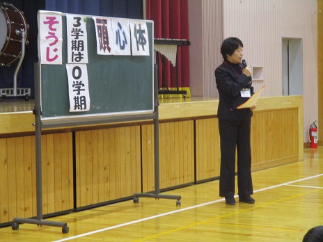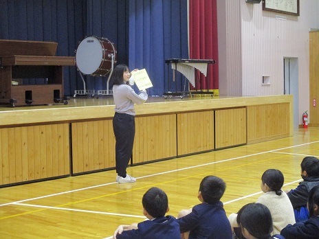 3学期の授業で、頑張ることを全校のみんなに話してくれました。