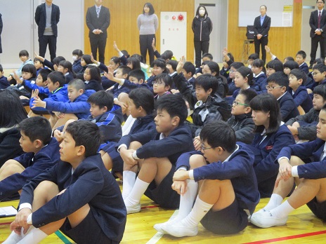 子ども達、みんな、キリリとした顔で体育館に集合。