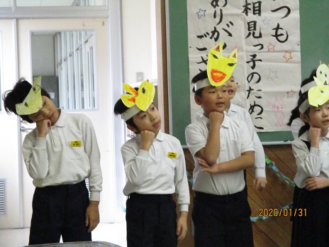 子ども達はこぎつねに変身して、歌います。詩の朗読をします。