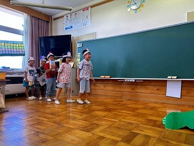 12日(金)にふれあい集会が行われました。前半の第①部は、1・2年生の発表です。生活科で学習した内容をクイズにして教えてくれました。