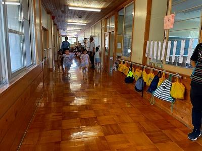 最後には、子供用の消防服を着て消火訓練をしました。皆さんの日々の訓練のおかげて、私たちは安心して暮らしていけることが分かりました。ありがとうございます。