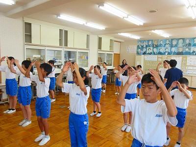 本日27日(木)、スクールカウンセラーの上原先生が、3・4年生を対象に「ストレス解消法」について授業をしてくださいました。ストレスは心の有り様ですが、身体を動かしたり、意識的に深呼吸したりすることで楽になるそうです。