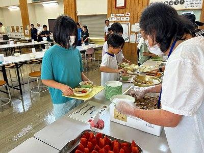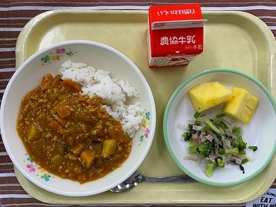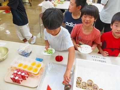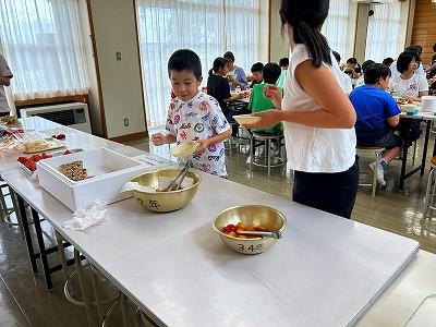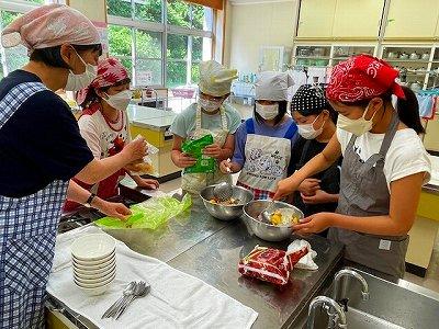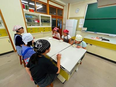 6年生は家庭科で調理実習を行いました。ジャガイモを使った料理をそれぞれが考え、これまで学習した切り方や調理法で作りました。ベーコンやウインナーの加工食品とタマネギや卵などを使って、野菜炒めやオムレツを上手にできました。