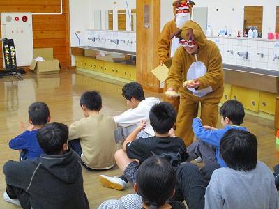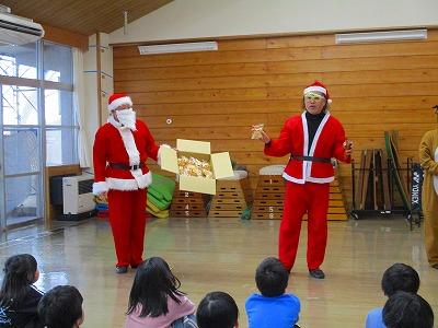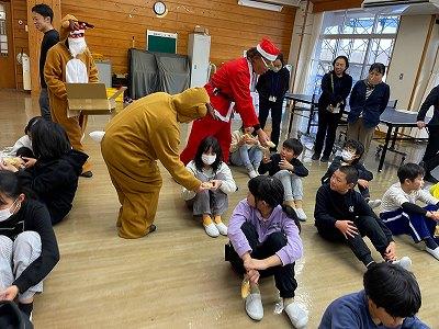 18日(木)のお昼過ぎに、本日2度目のサンタクロースが学校に来ました!どうやら、愛知県のケーキをプレゼントしに来てくださったようです。「おじサンタ」のチラシが、強面だったので、ドキドキしたのですが、優しいサンタクロースとトナカイさんでした♡