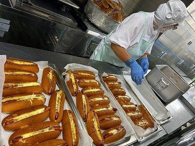 今日は「チーズホットドック」です。ボイルして、ケチャップなどにからめたウインナーをコッペパンにはさみ、