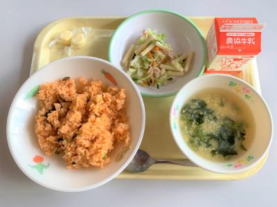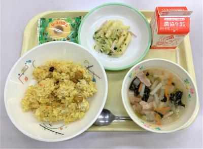 キムタクごはん、せん切りスープ、磯辺和え、牛乳