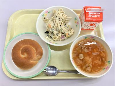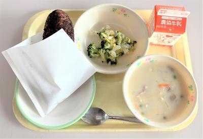 ミルクロール、クリームスパゲティ、ミネストローネ、牛乳
