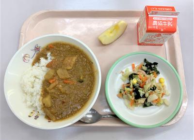 ポークカレー、ごま酢和え、りんご(穴水町産)、牛乳