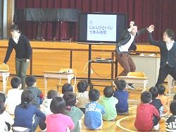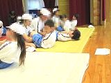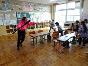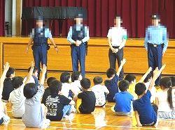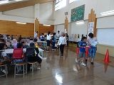 輪島警察署の皆様のご協力をいただき、不審者対応避難訓練・行動訓練を行いました。不審者が玄関から侵入し職員が対応する間に、児童は静かに速やかに決められた場所に避難することができました。その後は体育館に集まり、校外での不審者による声掛けへの対処方法を学びました。行動訓練では、真剣に取り組み「助けて。助けて。」と大きな声を出しながら逃げることができました。最後の感想発表でも、「今日学んだことをいかして、大声を出して、早く安全なところに逃げたい。」と発言していました。