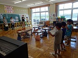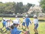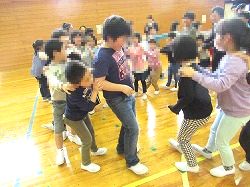 7名の1年生をあたたかく迎えるために、5・6年生の企画・運営による今年度最初の集会を行い、ゲームやプレゼント渡しを行いました。「しろくまのジェンカ」では、楽しく踊りながらジャンケンを行い、最後には43人が一つの長い列になりました。また、2年生から6年生の作ったプレゼントを手にした1年生はニコニコ笑顔いっぱいでした。