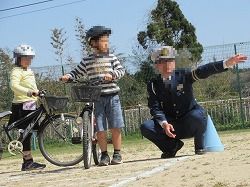 青空の下、輪島警察署の方々のご協力をいただき交通安全教室を開催しました。1・2年生は、中居南横断歩道で信号機の使い方と道路横断の渡り方を学びました。3~6年生は、運動場の特設コースで、安全な自転車の乗り方や自転車での横断歩道の渡り方などを学びました。「交通事故にあわないように」「穴水町の死亡事故ゼロが続きますように」と、とても真剣な表情でした。