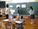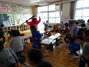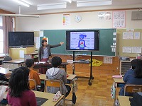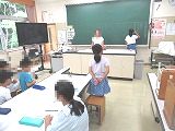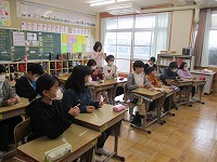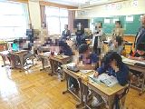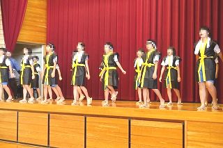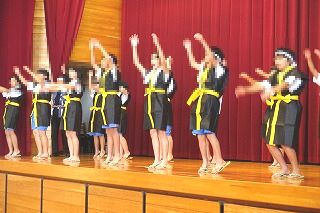 地域の「よさこいの先生」においでいただき、「能登和っちゃ」を教えていただきました。紅白に分かれてお互いの練習を見て、笑顔がステキ、楽しそうに踊っている、見ていて楽しくなる等の感想を発表していました。「よさこいの先生」からも、とても上手になったとお褒めの言葉をいただきました。