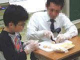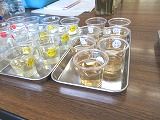 6年生が、日本食文化のもとである「うま味」について学びました。昆布、かつおぶし、煮干し、干ししいたけ等のだし味の違いを体験しました。「色々混ぜると1種類よりもいい味がする」「混ぜるといやな部分が消される」等の発見をすることもできました。