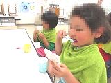 6月は「むし歯予防月間」です。給食後の染め出しによる歯みがき指導をしたり、むし歯予防についてのお話しをしたりしています。みんな真剣な表情で取り組んでいます。