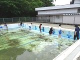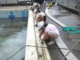 1年生~6年生全校児童でプール掃除を行いました。1・2年生はプールフェンス周辺水路の落ち葉や泥をすくい上げてきれいにしました。3・4年生はオーバーフロー水路の掃除、5・6年生は更衣室やトイレの掃除、そして、プールの中をきれいにしました。今年は、14名の保護者ボランティアのご協力をいただいたおかげで、とてもきれいになりました。保護者の皆様、ありがとうございました。