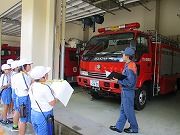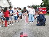 授業中の火災発生を想定した避難訓練を行いました。「お・は・し・も・て」を守り、1分32秒で全校児童の避難を完了することができました。避難後は、水消火器を使っての消火訓練やスモーク体験をさせていただきました。