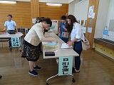 子どもたちの登下校を見守って下さる「子ども見守り隊」の方々との対面式を行いました。まずは、警察署長さんから交通安全や防犯についてのお話しがあり、その後、見守り隊の方々の紹介がありました。最後に地区毎に集まって自己紹介等をしました。見守り隊の皆さん、今年度もよろしくお願いいたします。