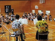 ふれあい集会で5・6年生が発表をしました。5年生は、社会科で学習した「それぞれの気候にあった生活」について沖縄県、石川県、岐阜県に関することをクイズ形式で発表しました。6年生は、親子で体験した鋳物作りについて、写真やたたら唄を交えて発表しました。また、リズムや音色をあわせた合奏や合唱も体育館に響き渡り、とてもステキな時間となりました。