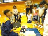 夏の水泳シーズンに向けて、保護者と高学年児童を対象にAED講習会を行いました。穴水消防署の方々から、水難事故の救助方法や心肺蘇生法、そしてAEDの使い方を教えていただきました。