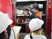 社会科で「地域を守る仕事」の学習をしている3・4年生は、この日、消防署の見学に行ってきました。教科書で学んだ「知識」は、実際に目にしたり触れたりすることで「自分事」としてとらえることができるようになります。「こんなふうにして、私たちは守られているんだ」とわかり、深い理解につながります。人とのかかわりも重要です。今回の見学でも消防署の方々には、とても丁寧に説明していただきました。日ごろの訓練があるから、いざというときに素早い行動ができること、目的に応じた設備が整えられていることなどを直接教えていただくことで、その仕事に携わっている人の真剣さが伝わってきます。今回子供たちは特別に防火服も着させてもらいました。子供たちの喜びの声が聞こえてきそうです。