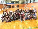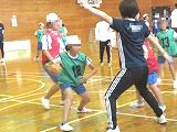 県内トップスポーツチームによるスポーツ教室を開催し、北國銀行ハンドボール部Honey Beeのみなさんにおいでいただきました。まずは、ランチルームで一緒に給食を楽しく食べました。その後、先日の国体で7連覇を果たした日本一のスピードと迫力あるプレーを見せていただいたり、ドリブル、パス、シュートを体験させていただいたりしました。最後のミニゲームでは体育館中が盛り上がりました。初めてのハンドボール体験でしたがとても楽しく、ハンドボールが大好きになりました。Honey Beeのみなさん、ありがとうございました。向洋っ子は、これからもみなさんを応援していきます。ガンバレ!ガンバレ! Honey Bee!!