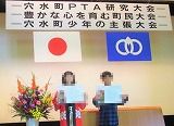 町少年の主張大会に2名の6年生が参加しました。人口減等により変化していく地域の祭りを存続させていくための担い手としての決意や、県外の子どもたちとの交流を通して積極的になっていく自分自身の変化などについて発表しました。太鼓のリズムを交えて工夫を凝らしたり、明るくはっきりした口調で語りかけたりする姿がとても素敵でした。