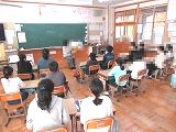 理科を中心に生き物の観察をしています。5年生のメダカの卵は、デジタル顕微鏡と大型テレビを通して変化していく様子を見ることができるようにしてあります。プランターに植えた6年生のジャガイモも葉が青々と元気いっぱいです。