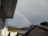 | 夕日に照らされ、東の空に きれいな虹がかかりました。 こんなにはっきりと見えるのも珍しいですね。 虹を見ると心が洗われる思いがします。 | |