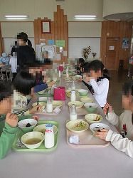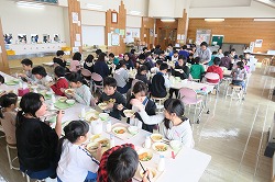 子どもたちは、隣りがいつもと違う友達なので、美味しい給食おしゃべりを十分に