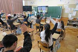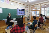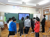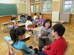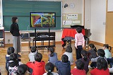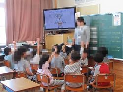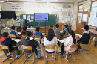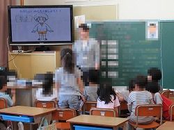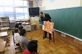 昼休みに、4年生がプロジェクターとパソコンを使って紙芝居を披露しました。