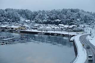 今日は午後から本降りの雨になり,中居湾もすっかりかすんでしまいました。