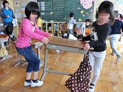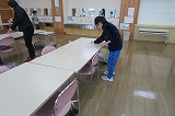 教室の床をから拭きしたり、重い机を協力して運んだり、