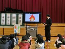 また、生徒指導の担当からは、デジタル画像を使って火・水・人・雪などへの注意をわかりやすくお話があり、子ども達は、しっかりと聞き、見て、考えていました。