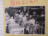 昭和60年代の給食風景の写真が掲示されています。