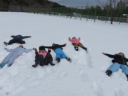 雪の上に寝ころんだり、雪だるまを作ったり、雪山をつくり滑ったり・・