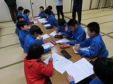 27日()の「ふれあい遠足」に向けて、縦割り班会議を行いました。遠足のめあて確認、ゲーム説明、そして、歩く時の並び方説明や並び方練習などを各班のリーダーである6年生が中心となって行いました。