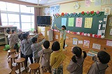 12月の読み聞かせが行われています。子ども達は、この時間を楽しみにしています。様々な先生が、色々な本を読んで下さるからでしょうか。