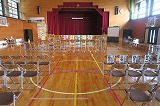 放送で呼びかけたところ、ほぼ全校が3階に集まりました。