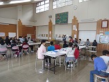 縦割り班の親睦を深めるのが、大きな目的です。(テーブル:いつもは学年毎)