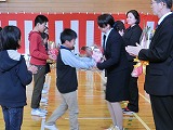 最後に、2年生から6年生の作ったメッセージカードが1年生ひとりひとりに渡され、1年生はニコニコ笑顔いっぱいでした