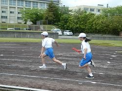 町陸上競技場で陸上記録会が開催されました。5・6年生が100m走・1000m走・走り幅跳び・ソフトボール投げ・4×100m リレー【代表者】に挑戦しました。5・6年生の力強い走りや跳躍、そして投擲で、心配された雨雲を吹き飛ばすことができました。