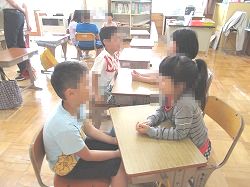 朝の10分間を利用してお話タイムの「ルンルンタイム」を行いました。ペアでテーマについて話をしたり、話の内容について質問をしたります。今日は「がんばりたいこと」というテーマで話をしました。短い時間でしたが、自分の思いを伝えたり、質問したりすることができました。