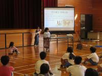石川県地球温暖化防止推進委員・NPO法人いきいき 副理事長の角章子さん(穴水町在住)をお招きして、5・6年生が環境について学習しました。5・6年生はこれまでに、美しい中居湾傍のポケットパークにゴミ拾いに出かけたことをきっかけに、次々と中居八景や中居鋳物に触れ、この環境を守りたいと思うようになったからです。