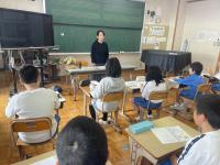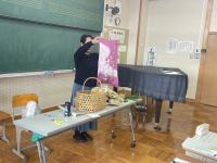 角さんからはプラスチックごみを減らすことや野山の恵み、風呂敷のよさ、牛乳パックの回収など様々なお話がありました。児童は「確かに買い物をするとすぐにプラスチックゴミがたまる。」「風呂敷を初めて見た。風呂敷って便利だな。」「リサイクルの大切さがわかった。」と感想がありました。教室に置かれた牛乳パック回収BOXのその後をただ今考え中です。
