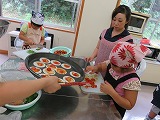 講師は、トマト農家の勝井さんと本校栄養教諭が担当しました。はじめに、親子でトマトの収穫、その後、グループ毎に「餃子の皮で簡単ピザ」など3種類を調理しました。子ども達も包丁でトマトを切ったりなど頑張りました。