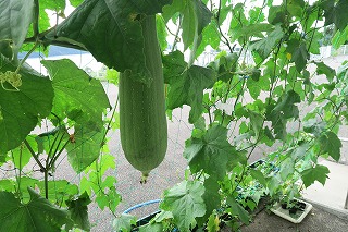 (写真:玄関前のヘチマ)