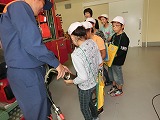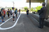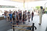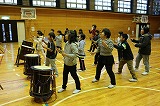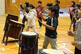 ばちの持ち方、足の構えなど基本動作から順に体験しました。