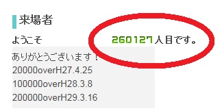 本日、ホームページの来場者が25万人を突破しました。
