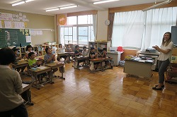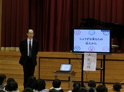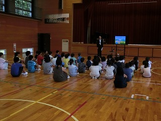 先生は、向洋小が大好きだったこと、今後外国人とのコミュニケーションが益々大事になるから英語を益々勉強してほしいこと等をお話されました。
