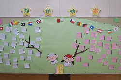 図書室前にツリーを形の枠が登場しました。